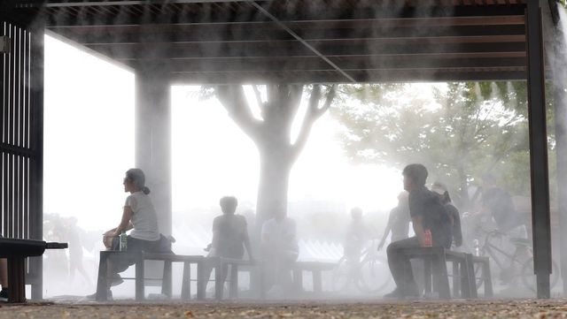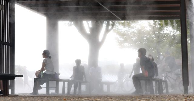 서울 서남권에 폭염 경보가 발효된 지난해 9월 18일 오후 서울 영등포구 여의도공원에서 시민들이 더위를 피해 쿨링포그가 나오는 그늘에서 쉬고 있다. / 연합뉴스