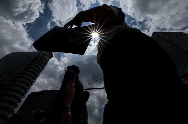 전국 대부분 지역에 폭염특보가 내려진 지난해 7월 31일 서울 종로구 광화문네거리에서 시민들이 뜨거운 햇빛 아래 이동하고 있다. / 뉴스1