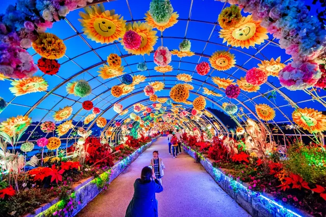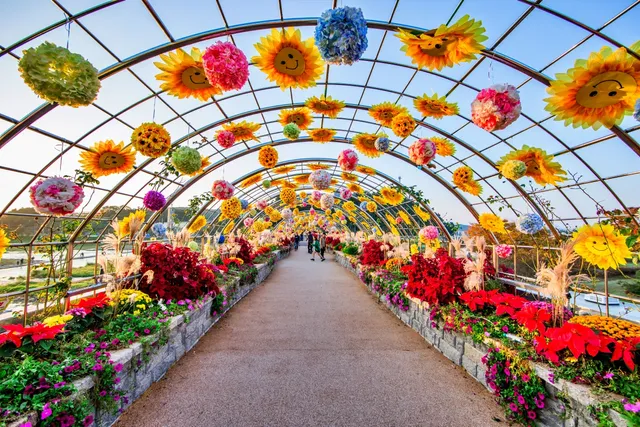 볼거리도 풍부하여 포토존으로 유명한 수국터널은 여전히 인기가 높습니다. 아직 꽃은 피지 않았지만, 화분으로 꾸며진 터널과 다양한 색상의 우산 장식이 이색적인 분위기를 선사합니다. 접근이 용이한 석송대 주차장을 이용하면 더욱 편리하게 즐길 수 있습니다. 그 외에도 다양한 종류의 꽃밭과 터널을 즐길 수 있습니다.