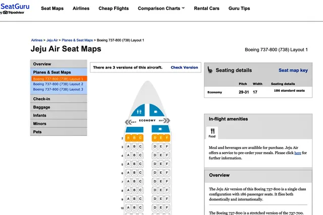 비행기 표를 구매한 후, ‘에어로로파’,’시트구루’와 같은 사이트에서 실제 좌석 배치를 확인하는 것도 유익합니다. 창문 유무, 좌석 폭, 승무원 점프싯 위치 등 세부 정보까지 알 수 있습니다.