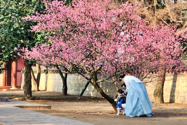 한옥마을 근처에는 전주 전통음식을 즐길 수 있는 식당과 카페가 많아, 꽃나들이 후 간단한 식사나 차 한 잔을 즐기기에 적합합니다. 가족, 친구와의 나들이에 안성맞춤입니다.