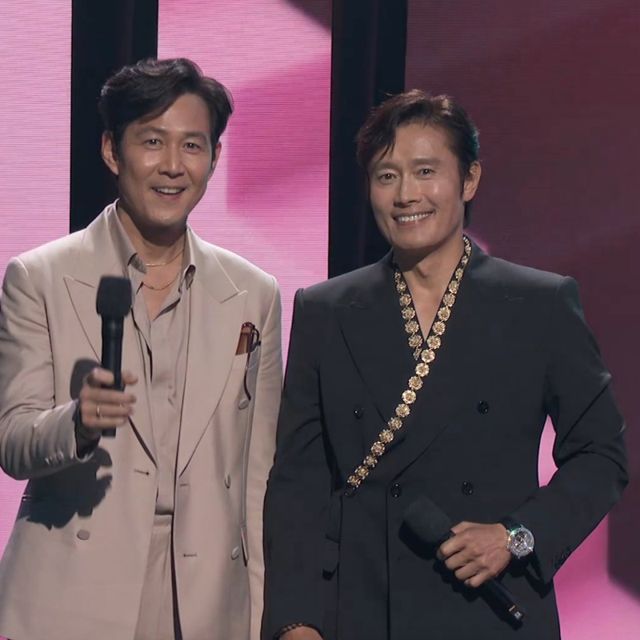 현장 MC의 “‘오징어 게임’은 전세계를 장악했다. 모든 사람들의 화두가 됐다. 다음은 어떤 일이 벌어질지 궁금하지 않나”는 소개와 함께 이정재와 이병헌이 먼저 등장했다.