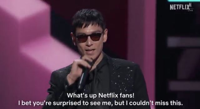 특히 마약 논란 이후 첫 행사 공식 석상에 선 최승현은 선글라스를 끼고 ‘래퍼’와 같은 제스처로 호응을 유도했다. 그는 “What’s up 넷플릭스 팬”이라며 “제가 나타나서 아마 놀라셨을 텐데 이렇게 멋진 자리에 제가 빠질 수 없죠. 이제 곧 공개될 새로운 오징어 게임 시즌을 여러분들에게 살짝 알려드리려 한다”고 말했다.