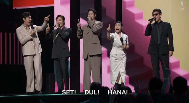 회장에 설치된 계단 세트장을 거닐며 ‘오징어 게임’ OST에 맞춰 가면을 쓴 퍼포먼스를 선보이는가 하면 ‘오징어 게임2’ 주제가를 부른 인도 래퍼 하누만카이드가 등장해 드럼 리듬에 맞춰 축하 무대를 꾸몄다. ‘오징어 게임’의 마스코트인 영희와 시즌3에 첫 등장할 철수도 무대 VCR에 등장해 눈길을 끌었다.
