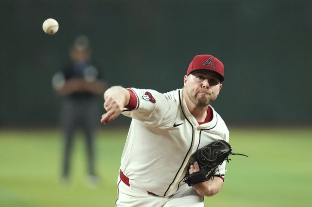 Arizona Diamondbacks starting pitcher Corbin Burnes warms up prior to a baseball game against the Pittsburgh Pirates Tuesday, May 27, 2025, in Phoenix. (AP Photo/Ross D. Franklin)/2025-05-28 11:54:05/