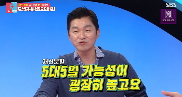 2일 방송된 SBS ‘동상이몽 시즌2-너는 내 운명’에서는 ‘이모카세’ 김미령과 남편 박민철이 이혼 전문 변호사 박민철에게 재산 분할에 대해 물었다.