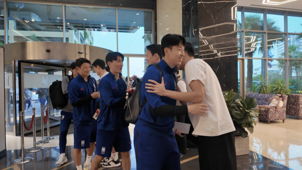 숙소에는 먼저 도착한 중동 4인방이 도열하고 있었다. 조유민, 권경원, 방굑우, 원두재 등 4명은 무사히 도착한 선수단을 환영했다. 선수들은 서로 반갑게 인사하고 껴안으며 이라크전에 대한 의지를 다졌다.