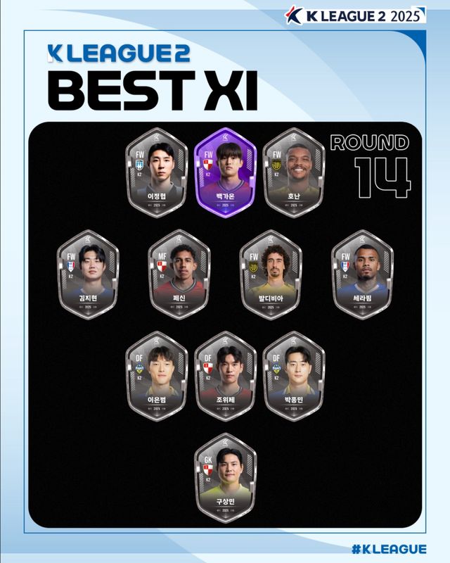 [ 하나은행 K리그2 2025 14R MVP, 베스트 팀/매치, 베스트11 ]
