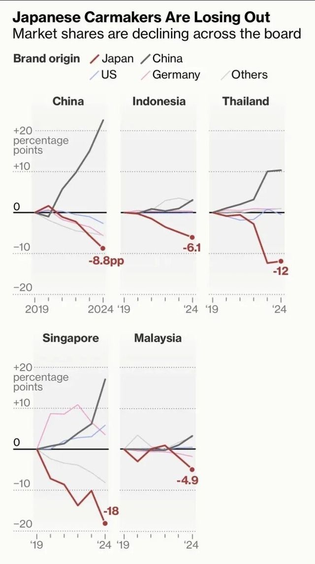 일본 공산품의 안방이자 놀이터였던 동남아에서 자동차 시장 주도권을 중국에 탈탈 털리고 있는중.