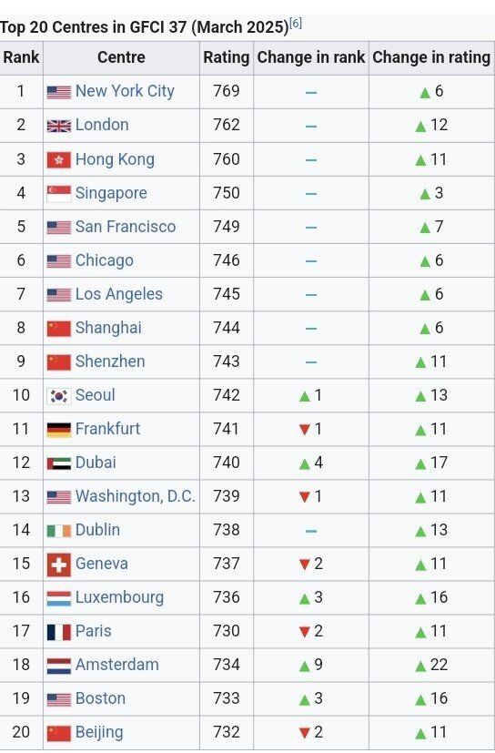 2025년 3월 기준 세계 금융 중심 지표에서 유럽 대륙 금융 중심지인 프랑크푸르트, 암스테르담, 파리는 상하이는 커녕 서울보다 밀리는 굴욕적인 성적을 거둠.