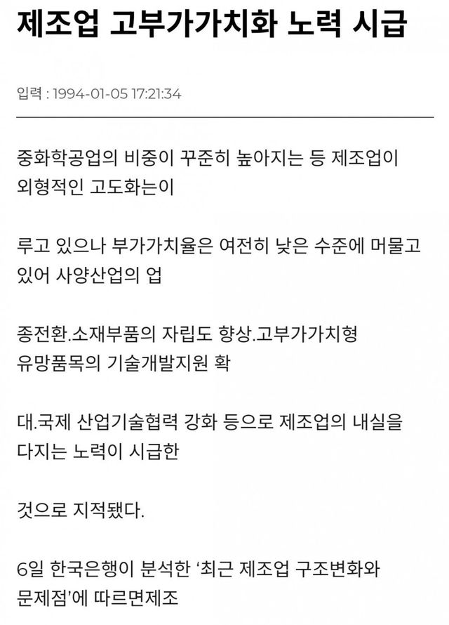 물론 고부가가치로 전환해야된다는 필요성을 부인하는게 아니라 해야하지만 그거 지금 시작해서 타 국가들을 따돌릴수 있다는건 그다지 근거가 없다는거임.