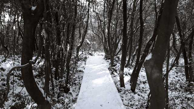 - 겨울: 따뜻한 옷차림으로 눈 내린 숲 걷기