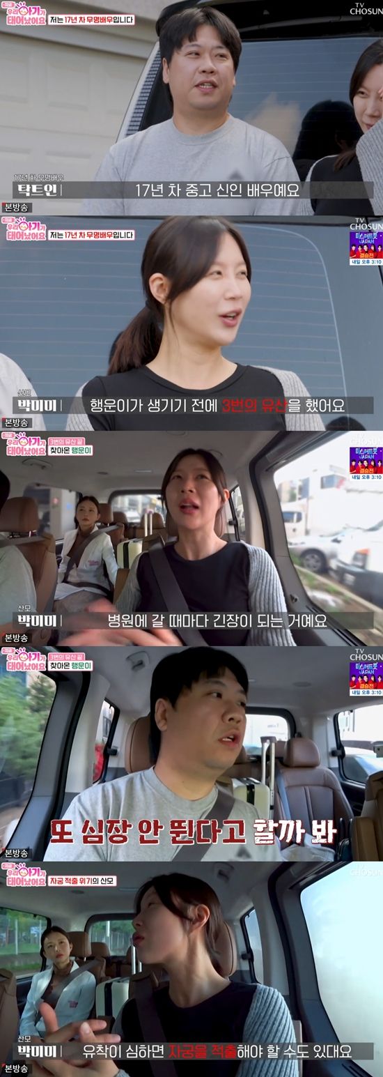 탁트인은 "저는 17년 차 중고 신인 배우다"라고 자신을 소개했고, 아내는 "사실 3번의 유산을 했다"며 "병원 갈 때마다 긴장이 된다"라고 말했다. 탁트인은 "또 심장 안 뛴다고 할까 봐"라고 덧붙였다.