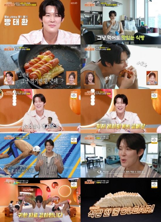 이어 박태환의 본격 먹방이 시작됐다. 그의 선택은 식빵으로 박태환은 맨 빵을 와구와구 먹더니 각종 잼을 꺼내 식빵에 발라 먹기 시작했다. 평소 빵을 좋아해 빵 맛집 리스트도 갖고 있다는 박태환인만큼 냉장고에는 여러 종류의 잼과 버터들이 정렬되어 있었다.