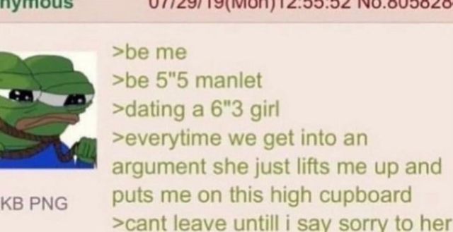 > 말싸움을 하게 되면 걘 항상 나를 번쩍 들어서 높은 찬장에 올려둠