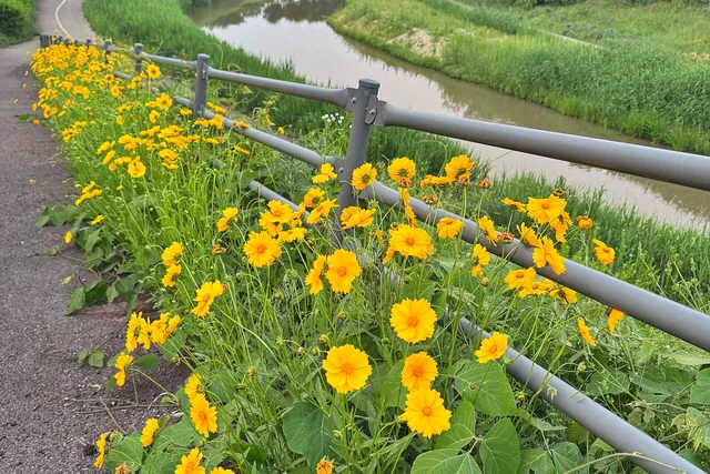마지막으로 소개할 곳은 상서재1호, 2호 수변공원 인근입니다. 이곳은 평택 시민들이 즐겨 찾는 조용한 산책로로, 노란 큰금계국의 아름다운 군락지가 색다른 매력을 선사합니다. 물길을 따라 걷는 길 양쪽으로 노란 꽃들이 이어져, 바람에 일렁이는 모습이 한 폭의 그림처럼 펼쳐집니다.