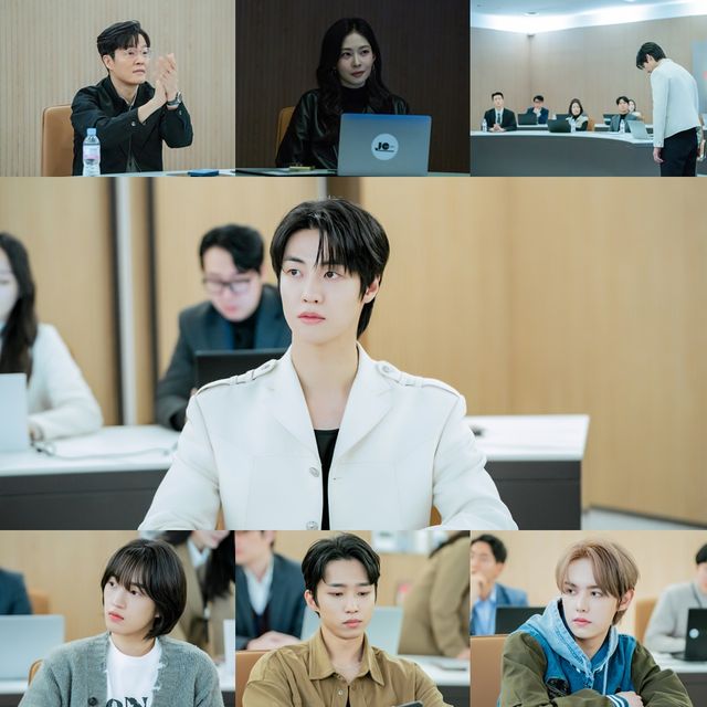 극 중 서태양의 데뷔 영상 공개 직후 서태양이 직접 나타나 정식 인사를 건네는 상황. 조대표(조한철)와 조지나(한유은)는 서태양을 향해 흐뭇한 미소를 머금은 채 박수를 치고, '더 크라운'의 기존 멤버 썬더(김신), 이노(서동성), 카디(크루)는 충격에 휩싸여 어리둥절한 표정을 짓는다.