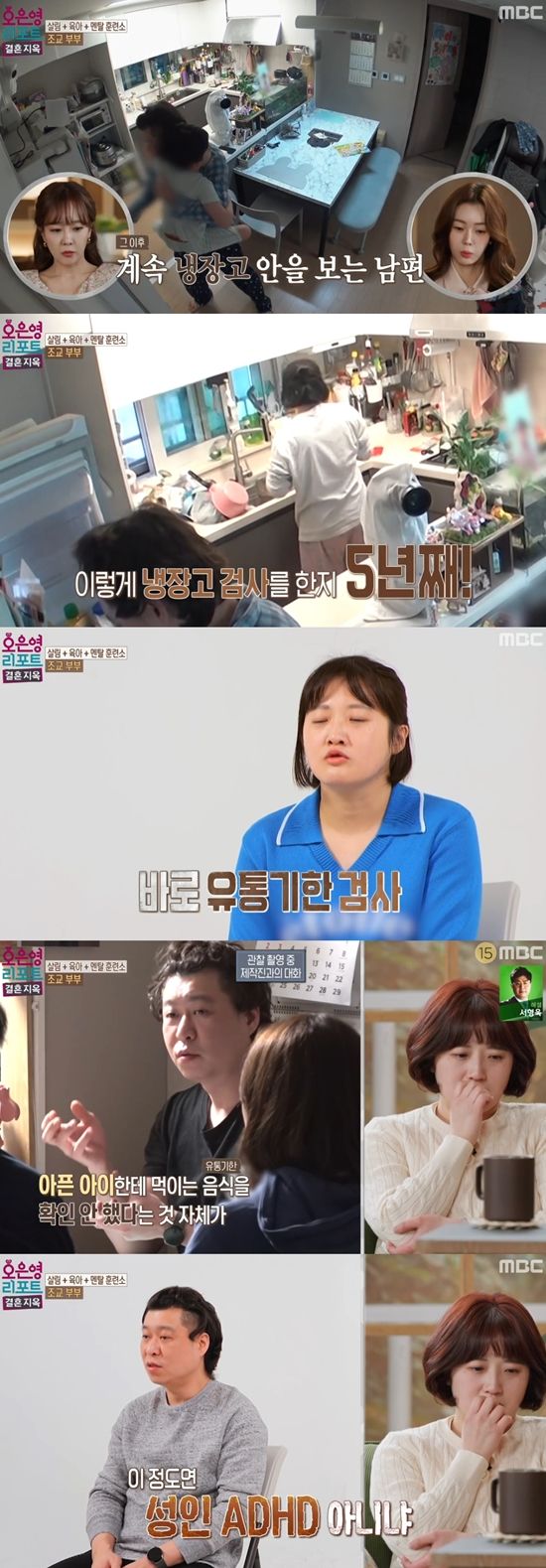 아내는 "(냉장고 검사) 5년 이상 됐다. 유통기한 지난 게 눈에 띄면 남편이 다 갈아엎는다"라며 남편이 냉장고 검사에 진심임을 밝혔다. 또 아내는 "(남편이) 시어머니 같다. 지적당하고 이러면 부담감이 느낀다"며 스트레스가 극심하다는 것을 밝혔다.