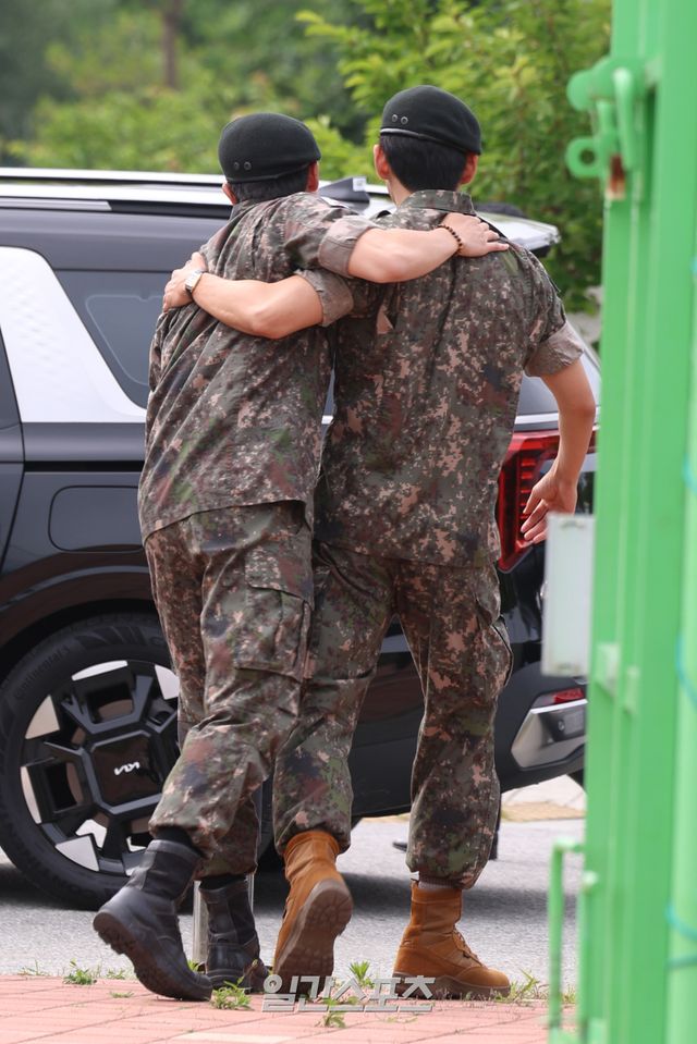 또 두 사람은 전역 후 가장 하고 싶은 일로 ‘공연’을 꼽으면서 완전체 활동에 대한 기대감을 높였다. 이후 RM과 뷔는 “빨리 앨범을 열심히 만들어서 다시 무대에 복귀하겠다”는 짧고 굵은 인사를 끝으로 현장을 나섰다. 두 사람은 현장을 나갈 때도 어깨동무를 하며 기쁜 마음을 숨기지 못했다. 이들의 뒷모습을 바라보던 아미들 역시 행복의 눈물을 흘리기도 했다.