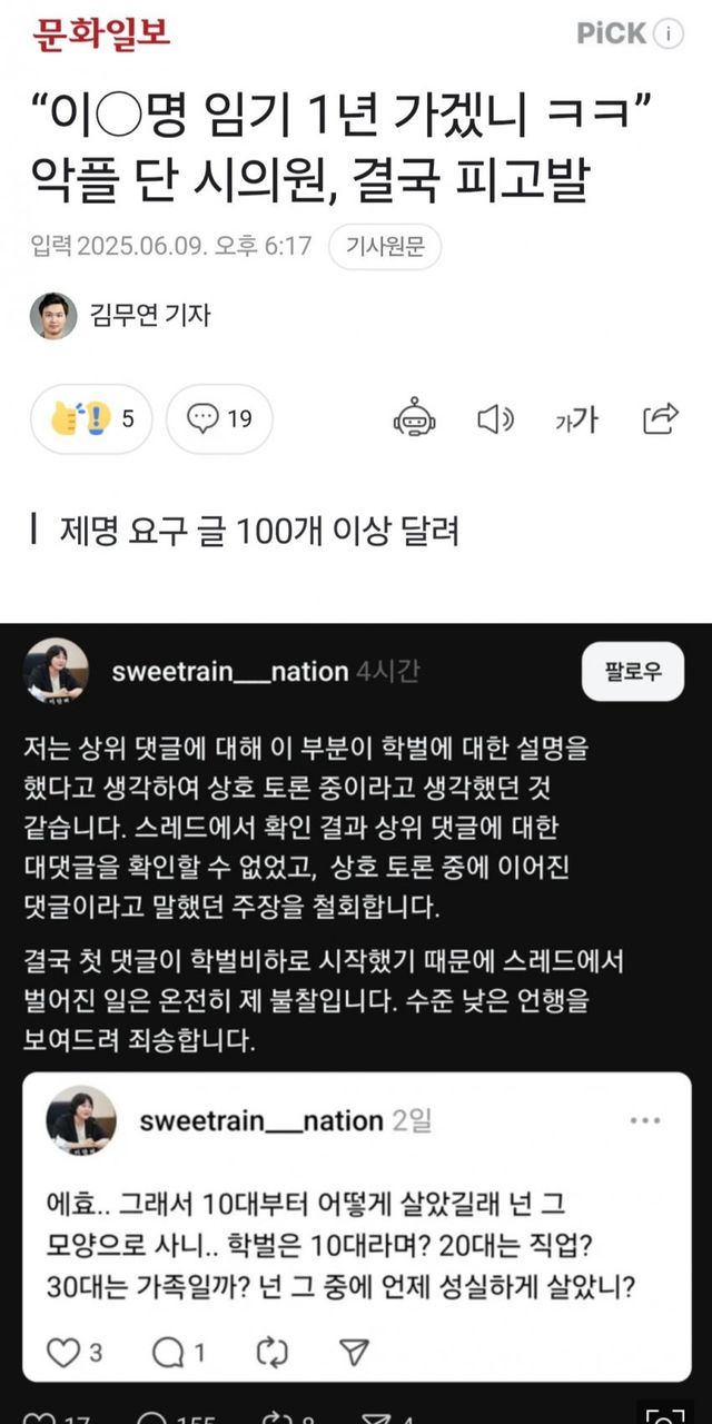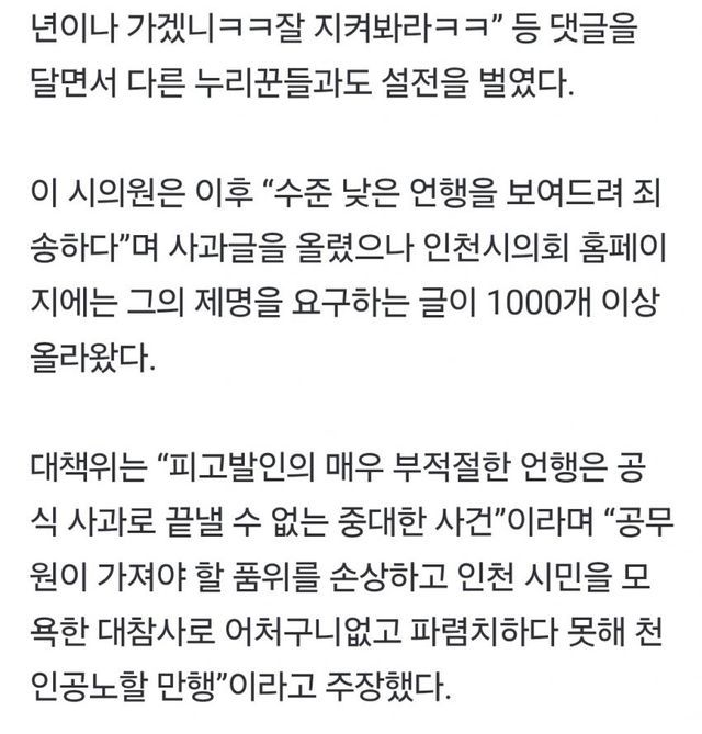 SNS에서 잼카 악플 달던 인천시의원 결국 고발당함ㅋㅋ