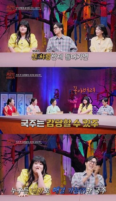 (엑스포츠뉴스 정민경 기자) '신빨 토크쇼-귀묘한 이야기' MC 이국주가 악귀를 이겨낼 기운이 있다고 해 웃음을 자아냈다.