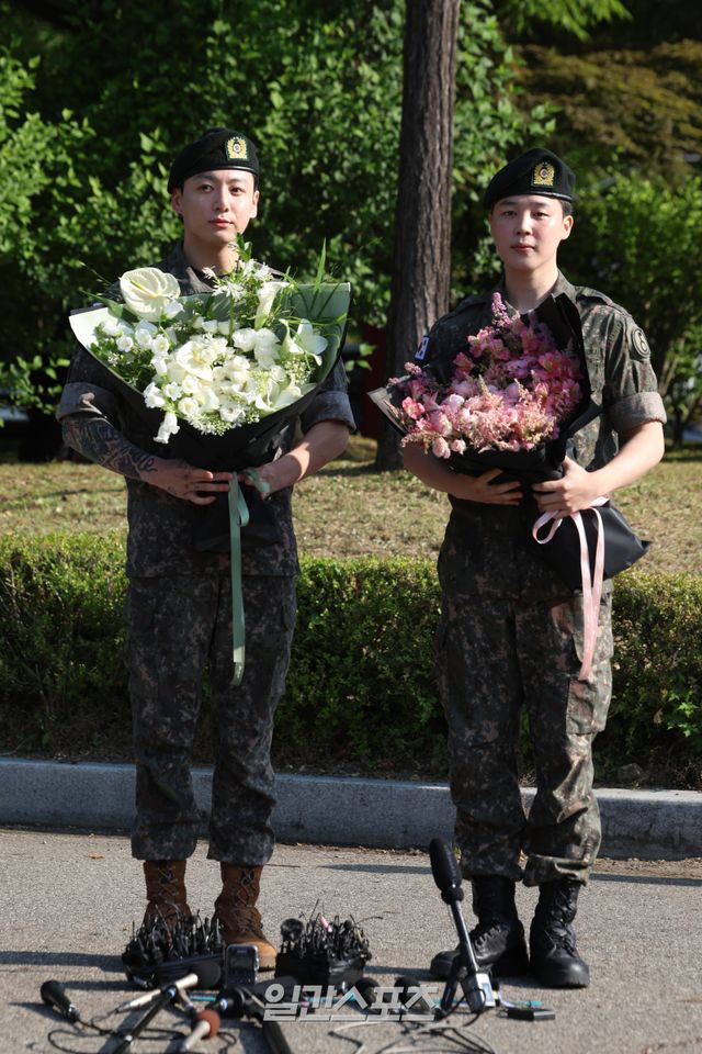 지민과 정국은 11일 오전 경기도 연천군 소재 육군 5사단에서 전역했다. 이들은 부대에서 전역 신고를 마친 뒤 인근의 연천종합운동장으로 이동해 취재진을 상대로 전역 및 군 복무 소회 등 간단한 소감을 전했다.