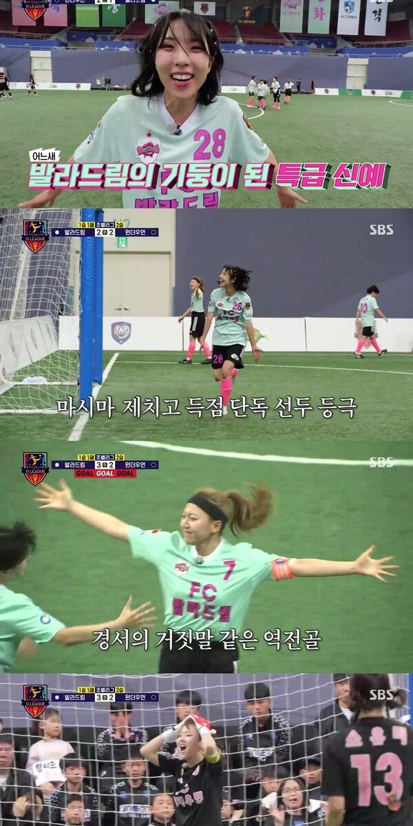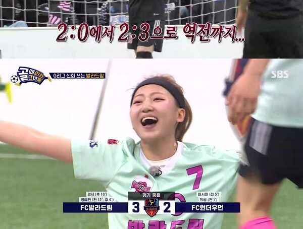 역전골의 주인공은 '발라드림'의 경서였다. 후반 10분 경서는 '원더우먼' 수비진을 따돌리고 아웃사이드킥으로 극적인 역전골을 성공시키며 팀에 짜릿한 승리를 안겼다. 경기가 끝난 후 경서는 "아직도 뭔가 실감이 안 난다. 이렇게까지 실감이 안 났던 승리가 없는 것 같다"며 기쁨을 표현했고, 정예원은 "마시마 때문에 며칠 못 잤는데 오늘은 푹 잘 수 있을 것 같다"고 감격했다.