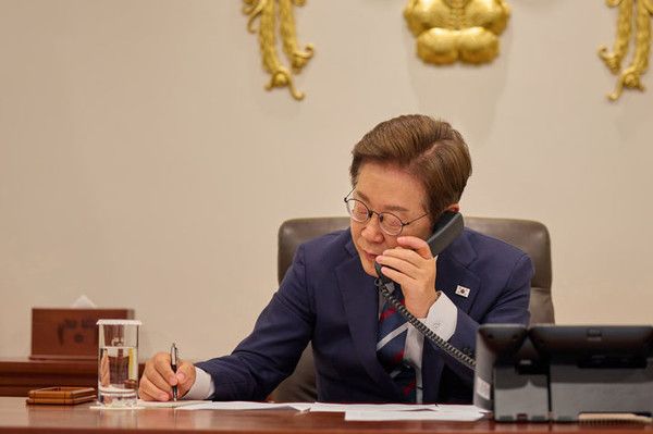이재명 대통령은 12일 오전 9시30분부터 약 25분간 끄엉 베트남 국가주석과 첫 전화 통화를 했다고 강유정 대통령실 대변인이 브리핑을 통해 밝혔다.