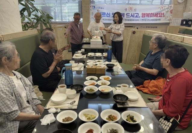 이날 행사에는 ‘이교수한정식수원대게’가 따뜻한 생신 밥상을 준비하고, 연무동 지역사회보장협의체에서 생일 케이크를 선물해 더욱 의미 있는 생신상을 마련했다.