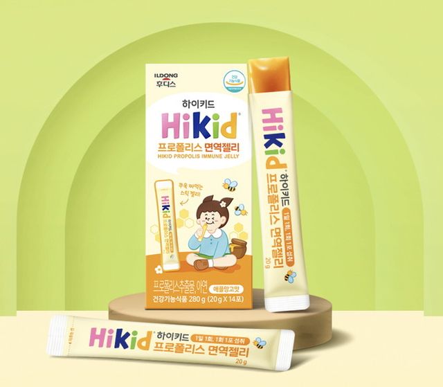 하이키드 프로폴리스 면역젤리는 정상적인 면역 기능뿐만 아니라 항산화, 구강 항균까지 삼중 기능을 한 번에 케어하는 어린이 건강기능식품이다. 아연, 프로폴리스추출물이 들었으며 프로폴리스의 경우 SIF 인증을 받은 브라질산 그린프로폴리스로 고품질 원료를 사용했다. 한 포에 20㎎을 담아 식약처 고시 1일 섭취량 기준 함량을 충족하도록 설계했다.
