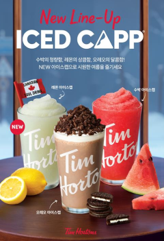 '아이스캡'은 팀홀튼의 시그니처 메뉴로 커피 또는 과일·초콜릿 등 다양한 재료에 얼음을 곱게 갈아 만든 블렌디드 음료다. 1999년 캐나다에서 첫 출시된 이후 25년 넘게 전 세계적으로 꾸준히 사랑을 받아오며 브랜드를 대표하는 제품으로 자리매김했다.