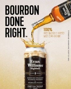 에반 드라이는 에반 윌리엄스 버번위스키와 탄산수를 사용하여 향료나 감미료 없이 위스키 본연의 맛을 살린 제품으로, 일본식 하이볼처럼 단맛 없이 깔끔한 목 넘김과 위스키 고유의 깊은 풍미가 차별화 포인트다.