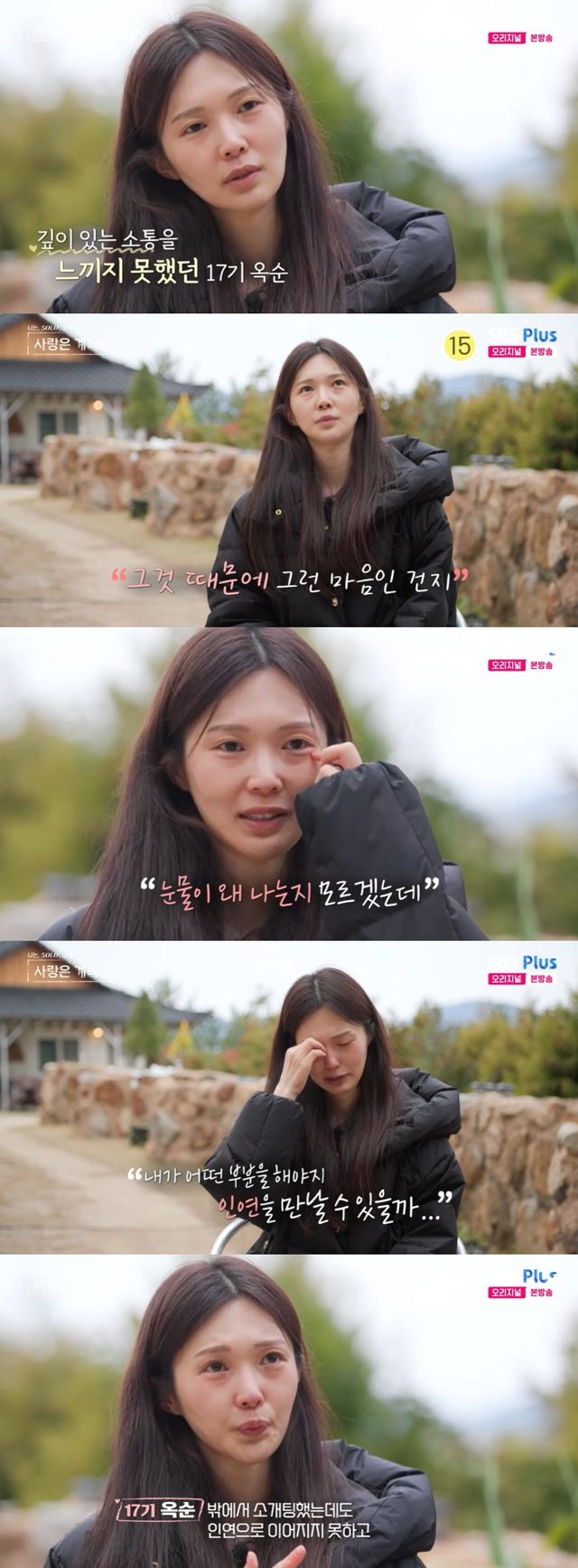 12일 방송된 SBS Plus와 ENA의 '나는 SOLO, 그 후 사랑은 계속된다'(이하 '나솔사계')에서는 '솔로민박' 둘째 날 하염없이 눈물을 흘리는 17기 옥순의 충격적인 속마음이 공개됐다.