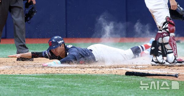 이후 도루를 노리던 장두성은 KT 투수 박영현이 던진 견제구에 오른쪽 옆구리를 맞았다. 공이 자신의 옆구리를 맞고 외야로 빠져나가자 장두성은 전력을 다해 2루로 뛰었다.