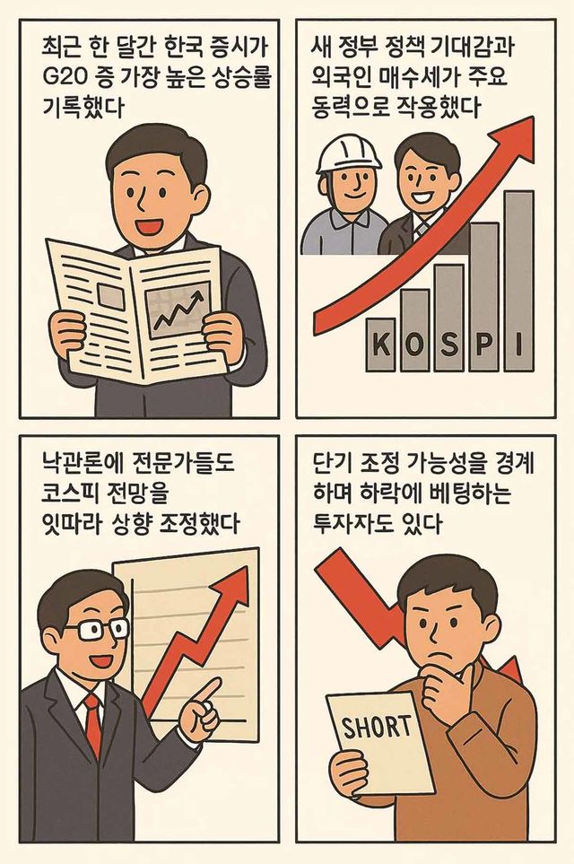 최근 한 달간 한국 증시가 주요 20개국(G20) 중 가장 높은 상승률을 기록하며 글로벌시장에서 두각을 나타내고 있다