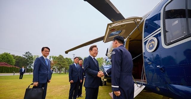 공식 일정 중 전용 헬기에 탑승했던 이재명 대통령 / 대통령실 제공