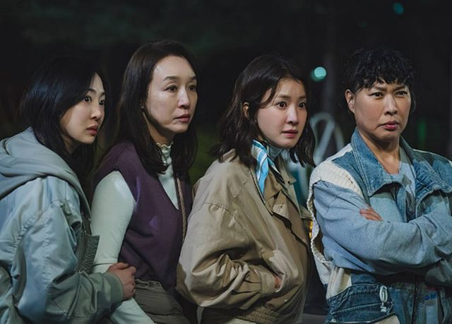 배우 이시영(왼쪽부터)과 정영주, 민진기 감독, 김다솜, 남기애가 지난 16일 오전 서울 마포구 상암동 스탠포드호텔에서 열린 ENA 월화드라마 '살롱 드 홈즈' 제작발표회에 참석해 포즈를 취하고 있다. ‘살롱 드 홈즈’는 광선주공아파트를 배경으로 추리력 만렙, 전직 에이스 형사와 보험왕, 그리고 알바의 여왕까지 우리 단지 해결사로 뭉친 여성 4인방이 아파트 빌런을 응징하는 코믹 워맨스 활극이다 / 뉴스1