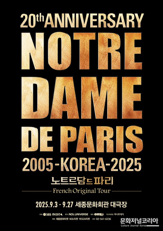 세월이 흘러도 변치 않는 강렬한 예술성과 음악으로 지난 20년간 오리지널의 품격을 지켜온 뮤지컬 <노트르담 드 파리> 프렌치 오리지널 내한공연 한국투어 20주년 기념 투어는 2025년 9월 3일부터 27일까지 세종문화회관 대극장에서 만날 수 있다.