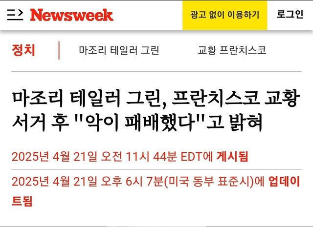 어제 교황 선종 소식에 트윗 " 악이 패배했다 ! "