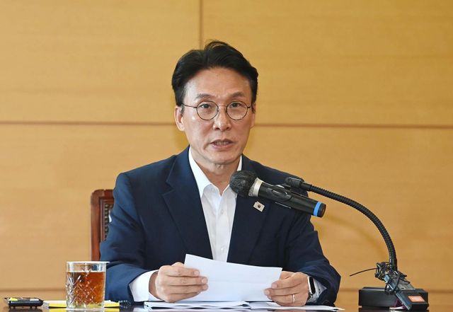 김민석 국무총리 후보자가 17일 오전 서울 종로구 통의동 금융감독연수원에 마련된 청문회 준비단 사무실에서 열린 사회분야 부처 업무보고에서 모두발언을 하고 있다. / 뉴스1(공동취재)
