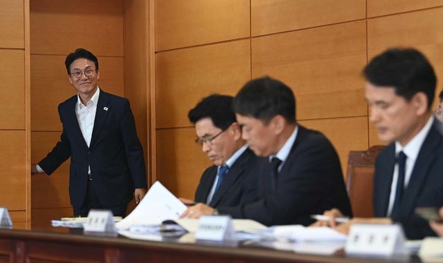 김민석 국무총리 후보자가 17일 오전 서울 종로구 통의동 금융감독연수원에 마련된 청문회 준비단 사무실에서 열린 사회분야 부처 업무보고에 참석하고 있다. /뉴스1(공동취재)