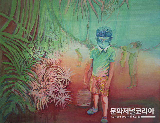 그림 속 주인공은 모두 기억의 일부이자, 현재 작가의 모습이다. 대상의 미묘한 표정과 과장된 색채는 익숙한 공간을 낯설게 만드는 예술적 시도다.