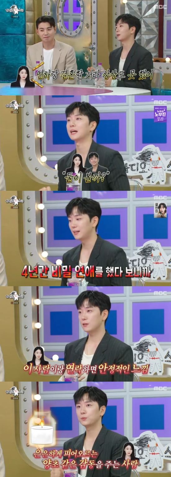 또 "연애 시작 전부터 아내와 연락을 하면 안정적인 느낌을 받았다. '이런 사람이랑 결혼하면 되지 않을까?'라는 생각을 했다. 제가 결혼에 대한 어필을 더 많이 했었다"고 회상했다.