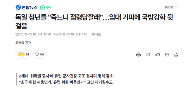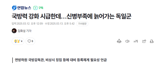 모병 기피는 심해지고 있고, 그렇다고 징병제를 되살리자니 정치적 리스크가 너무 큼.