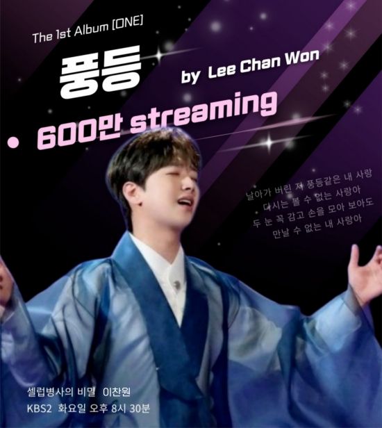 (엑스포츠뉴스 이정범 기자) 이찬원의 '풍등'이 600만 스트리밍을 돌파했다.