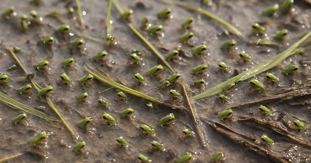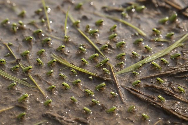 MBC뉴스에 따르면 풀잎과 갈대 위로 몸길이 2~4cm가량의 작은 초록 개구리들이 우글우글 매달려 있는 모습이 곳곳에서 포착됐다. 현장 조사에 참여한 구교성 한국환경지리연구소 책임연구원은 “이 수로에서만 300~400마리 정도가 관찰됐다”며 “실제 개체 수는 이보다 훨씬 많을 가능성도 있다”고 밝혔다.