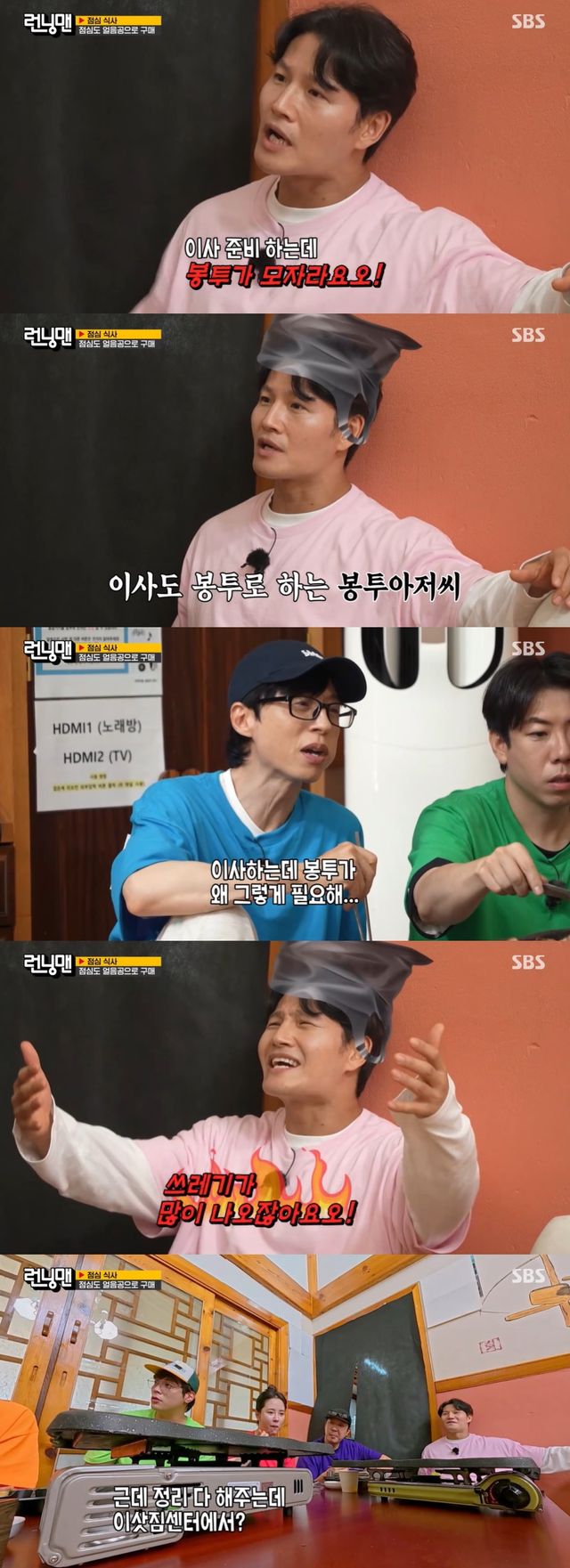 이에 유재석은 "박스에다가 다 넣어야지"라고 말하자, 김종국은 "쓰레기가 많이 나오잖아요"라고 반박했다.
