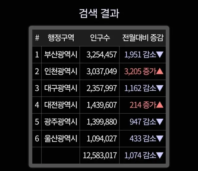 50만 이상 도시 중에서는 포항이 50만이 붕괴되었으며