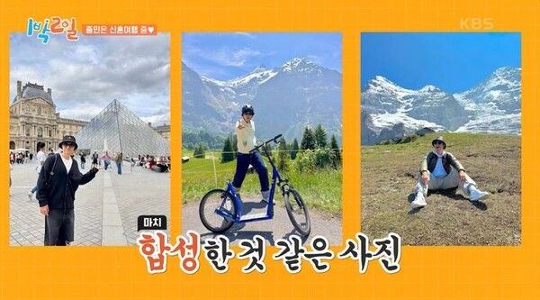 방송을 통해 공개된 사진에는 김종민이 프랑스에서 신혼여행을 즐기는 모습이 담겼다.