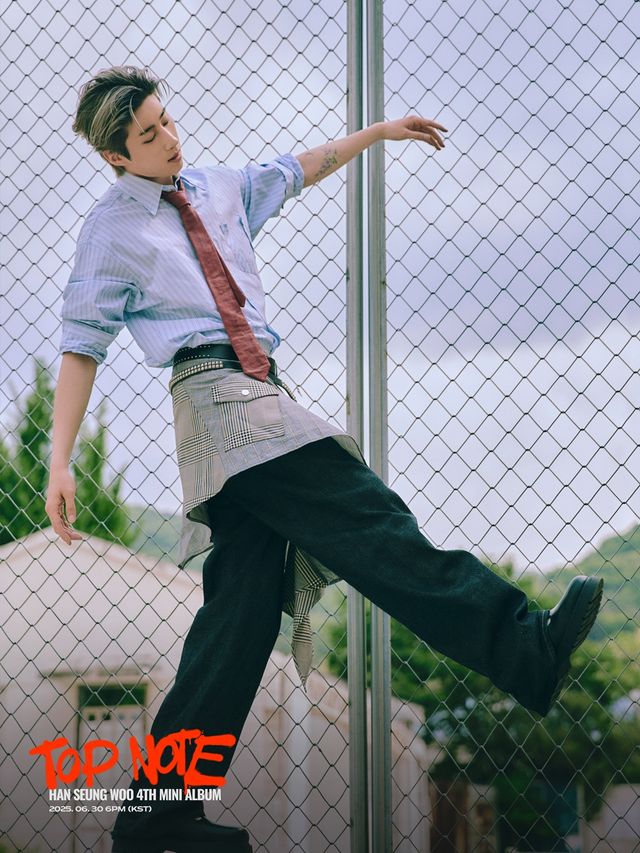 한승우는 23일 0시 공식 SNS 채널을 통해 네 번째 미니앨범 'TOP NOTE(탑 노트)'의 첫 번째 콘셉트 포토를 공개했다.